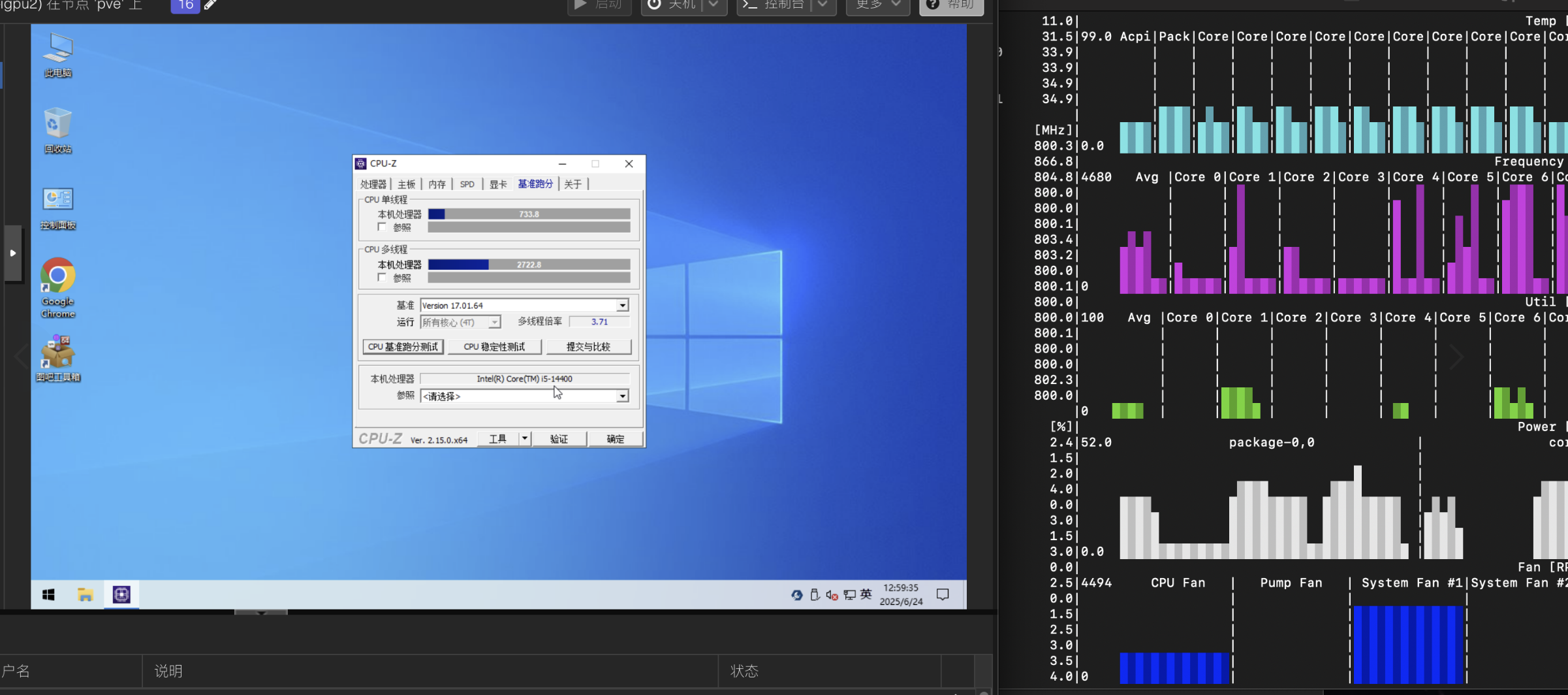 12-14代大小核CPU在最新的PVE环境下基本不需要做任何更改。不需要绑定aff核心亲和度。这样会适得其反。大小核在Linux上(测试宿主机内核为pve的6.8和6.14两个版本)会自动调度,优先使用P Core,然后使用E Core,最后使用HT Core(超线程)。由于AFF实际上是破坏了这种调度策略。实际上的效果甚至不如自动调度。另外在使用VGPU的情况可能会遇到单核跑分下降很多的情况如下图。不知道是由于什么引起的。